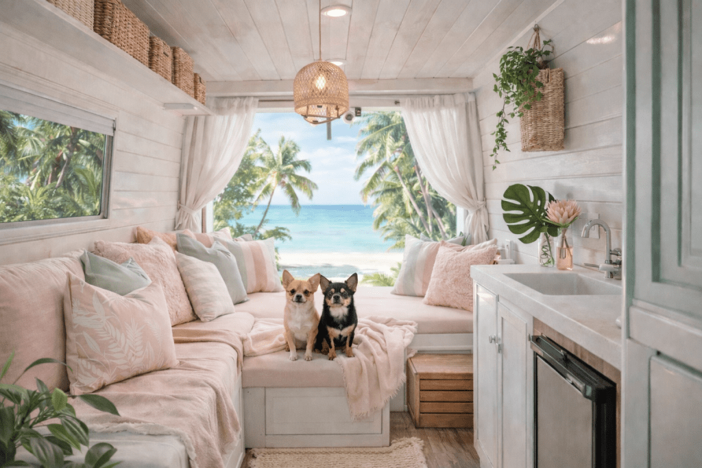 🌿 Beautiful, safe camper van layouts designed for pets of all ages.